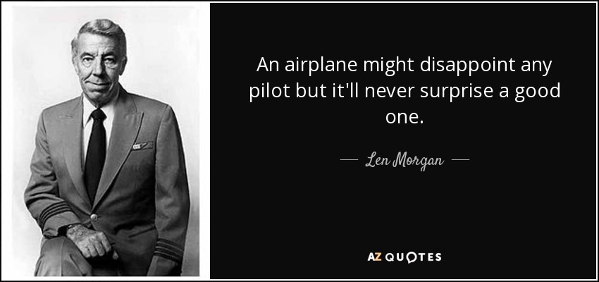 An airplane might disappoint any pilot but it'll never surprise a good one.
