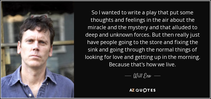 So I wanted to write a play that put some thoughts and feelings in the air about the miracle and the mystery and that alluded to deep and unknown forces. But then really just have people going to the store and fixing the sink and going through the normal things of looking for love and getting up in the morning. Because that's how we live.