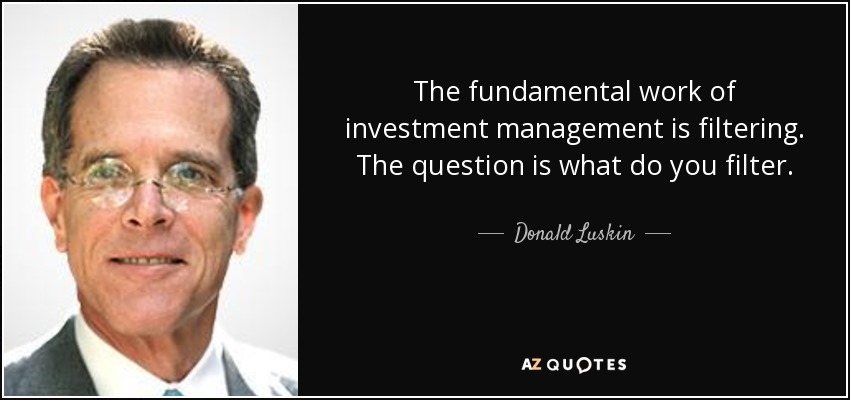 The fundamental work of investment management is filtering. The question is what do you filter.
