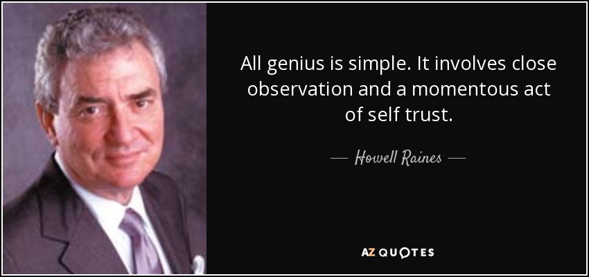 All genius is simple. It involves close observation and a momentous act of self trust.