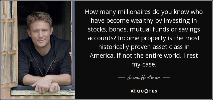 How many millionaires do you know who have become wealthy by investing in stocks, bonds, mutual funds or savings accounts? Income property is the most historically proven asset class in America, if not the entire world. I rest my case.