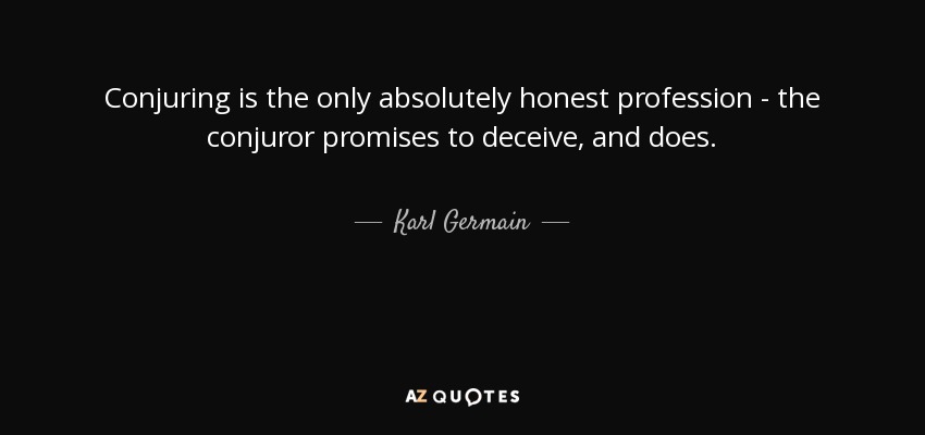 Conjuring is the only absolutely honest profession - the conjuror promises to deceive, and does.