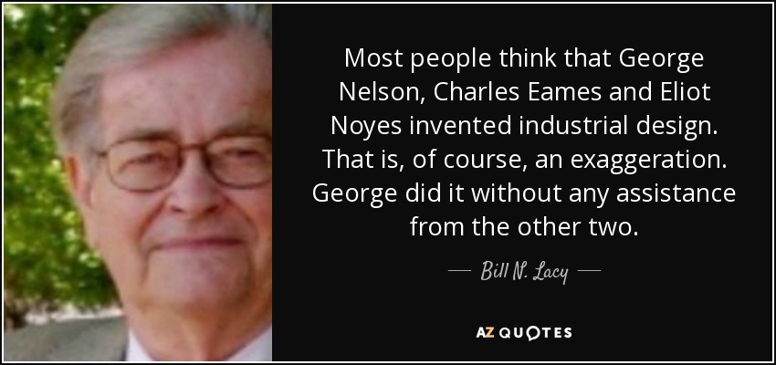 Most people think that George Nelson, Charles Eames and Eliot Noyes invented industrial design. That is, of course, an exaggeration. George did it without any assistance from the other two.