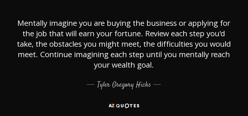 Mentally imagine you are buying the business or applying for the job that will earn your fortune. Review each step you'd take, the obstacles you might meet, the difficulties you would meet. Continue imagining each step until you mentally reach your wealth goal.