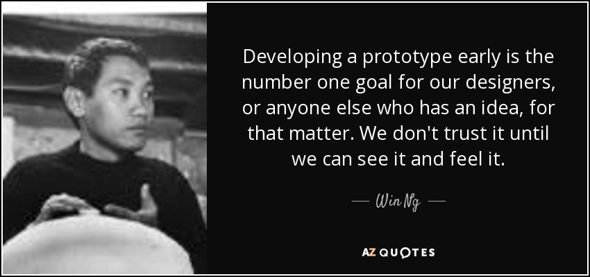 Developing a prototype early is the number one goal for our designers, or anyone else who has an idea, for that matter. We don't trust it until we can see it and feel it.