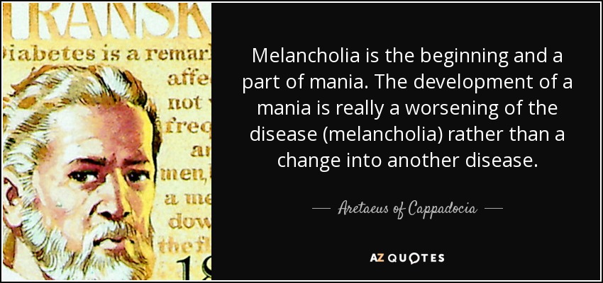 Melancholia is the beginning and a part of mania. The development of a mania is really a worsening of the disease (melancholia) rather than a change into another disease.