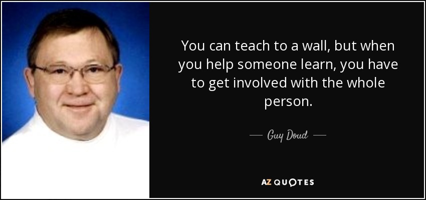 You can teach to a wall, but when you help someone learn, you have to get involved with the whole person.