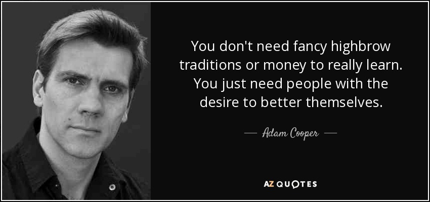 You don't need fancy highbrow traditions or money to really learn. You just need people with the desire to better themselves.
