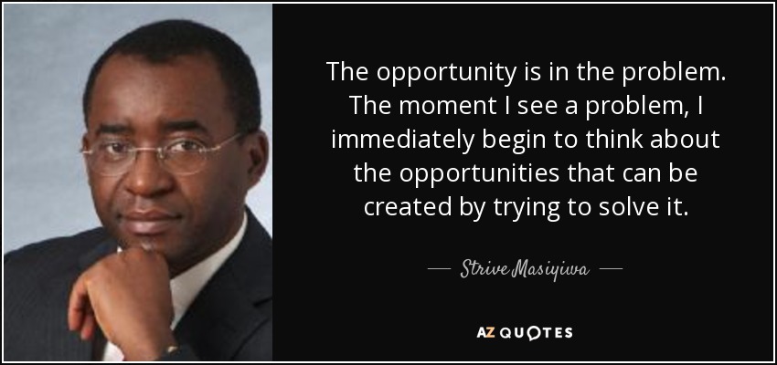 The opportunity is in the problem. The moment I see a problem, I immediately begin to think about the opportunities that can be created by trying to solve it.