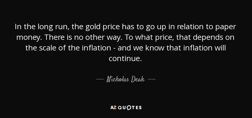In the long run, the gold price has to go up in relation to paper money. There is no other way. To what price, that depends on the scale of the inflation - and we know that inflation will continue.