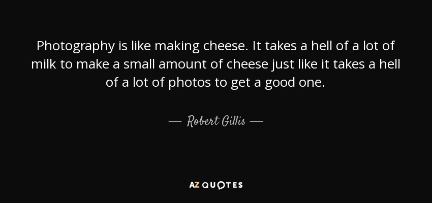 Photography is like making cheese. It takes a hell of a lot of milk to make a small amount of cheese just like it takes a hell of a lot of photos to get a good one.
