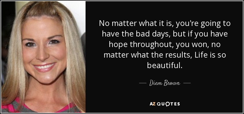 No matter what it is, you're going to have the bad days, but if you have hope throughout, you won, no matter what the results, Life is so beautiful.