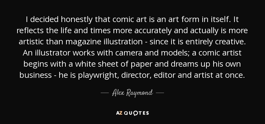 I decided honestly that comic art is an art form in itself. It reflects the life and times more accurately and actually is more artistic than magazine illustration - since it is entirely creative. An illustrator works with camera and models; a comic artist begins with a white sheet of paper and dreams up his own business - he is playwright, director, editor and artist at once.