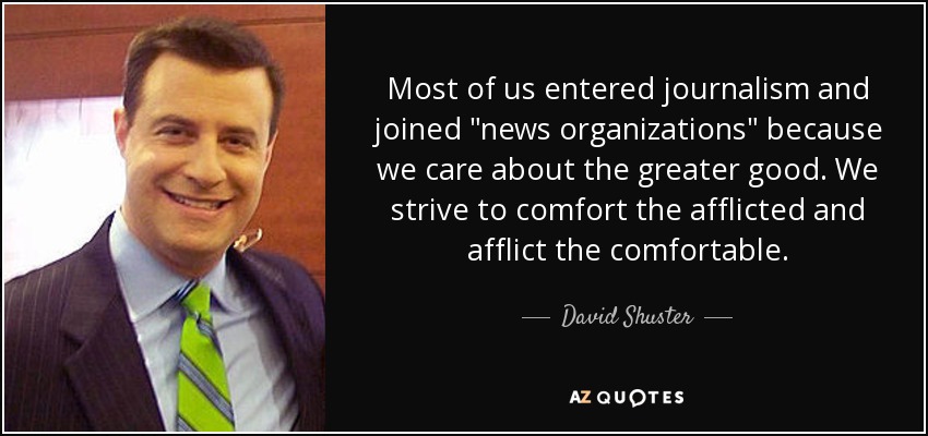 Most of us entered journalism and joined "news organizations" because we care about the greater good. We strive to comfort the afflicted and afflict the comfortable.