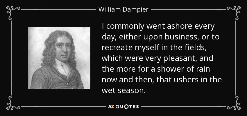 I commonly went ashore every day, either upon business, or to recreate myself in the fields, which were very pleasant, and the more for a shower of rain now and then, that ushers in the wet season.