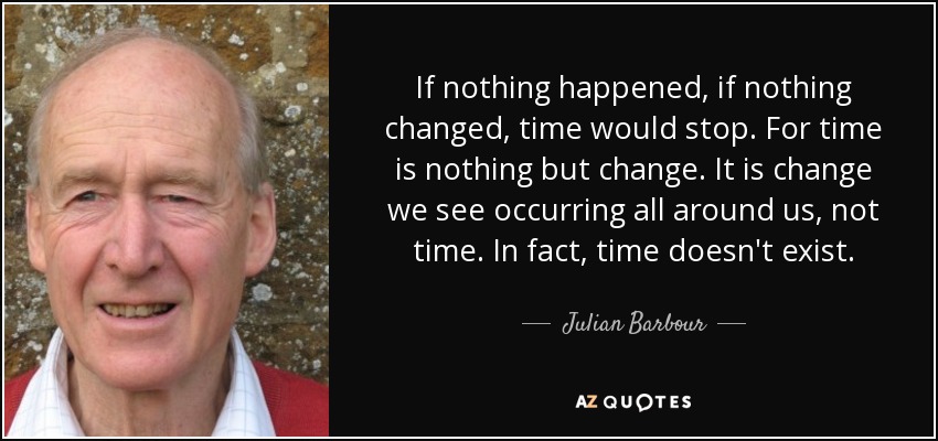 If nothing happened, if nothing changed, time would stop. For time is nothing but change. It is change we see occurring all around us, not time. In fact, time doesn't exist.