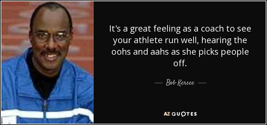 It's a great feeling as a coach to see your athlete run well, hearing the oohs and aahs as she picks people off.