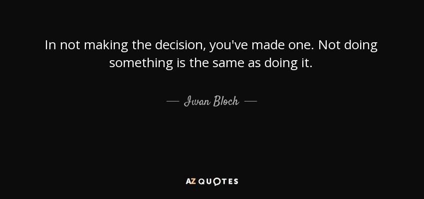 In not making the decision, you've made one. Not doing something is the same as doing it.