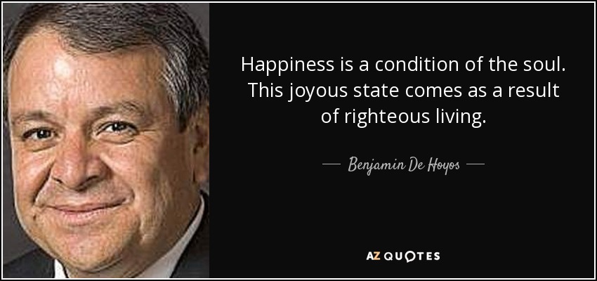 Happiness is a condition of the soul. This joyous state comes as a result of righteous living.