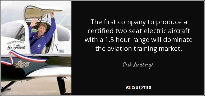 The first company to produce a certified two seat electric aircraft with a 1.5 hour range will dominate the aviation training market.