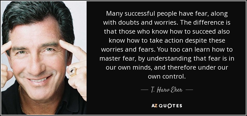 Many successful people have fear, along with doubts and worries. The difference is that those who know how to succeed also know how to take action despite these worries and fears. You too can learn how to master fear, by understanding that fear is in our own minds, and therefore under our own control.