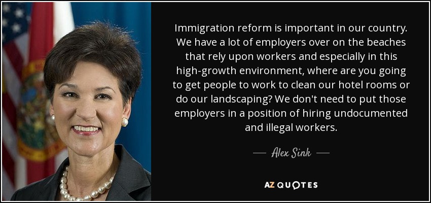 Immigration reform is important in our country. We have a lot of employers over on the beaches that rely upon workers and especially in this high-growth environment, where are you going to get people to work to clean our hotel rooms or do our landscaping? We don't need to put those employers in a position of hiring undocumented and illegal workers.