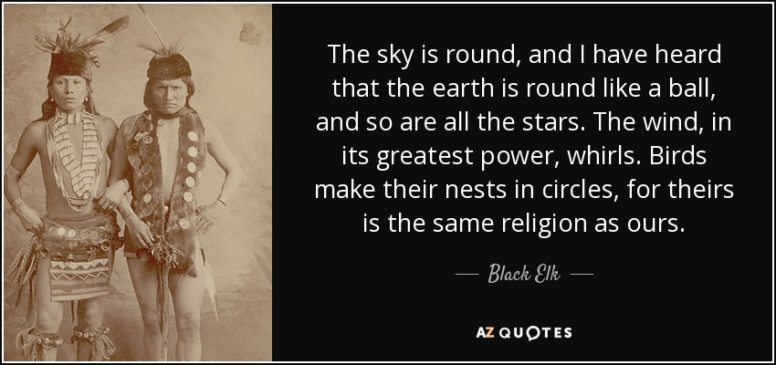 The sky is round, and I have heard that the earth is round like a ball, and so are all the stars. The wind, in its greatest power, whirls. Birds make their nests in circles, for theirs is the same religion as ours.