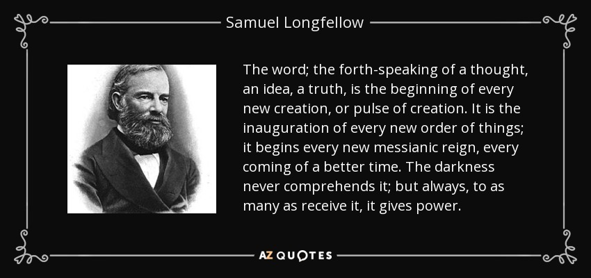 The word; the forth-speaking of a thought, an idea, a truth, is the beginning of every new creation, or pulse of creation. It is the inauguration of every new order of things; it begins every new messianic reign, every coming of a better time. The darkness never comprehends it; but always, to as many as receive it, it gives power.
