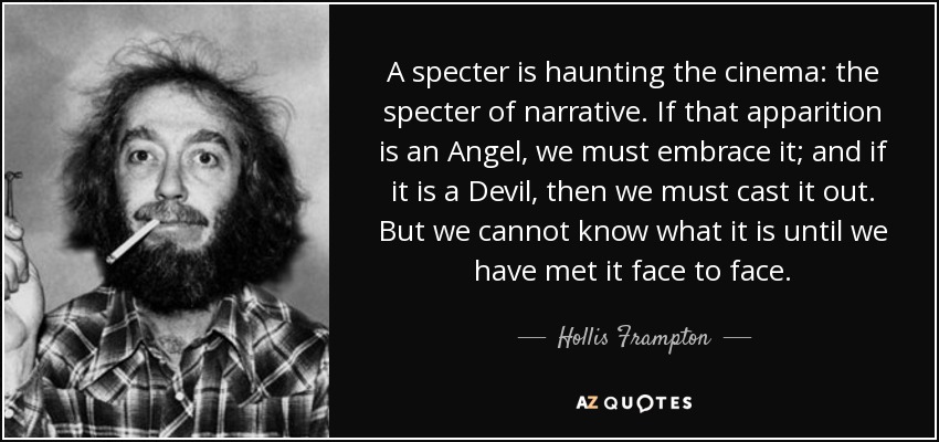 A specter is haunting the cinema: the specter of narrative. If that apparition is an Angel, we must embrace it; and if it is a Devil, then we must cast it out. But we cannot know what it is until we have met it face to face.