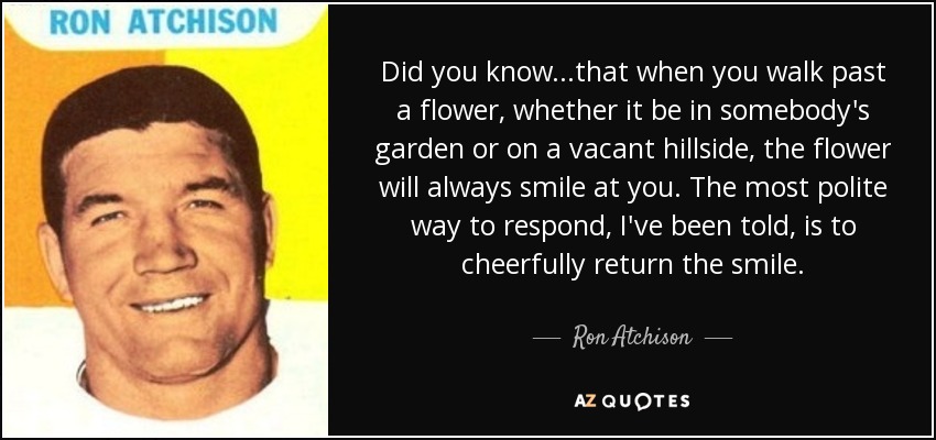 Did you know...that when you walk past a flower, whether it be in somebody's garden or on a vacant hillside, the flower will always smile at you. The most polite way to respond, I've been told, is to cheerfully return the smile.