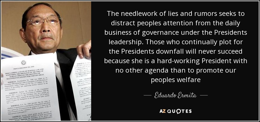 The needlework of lies and rumors seeks to distract peoples attention from the daily business of governance under the Presidents leadership. Those who continually plot for the Presidents downfall will never succeed because she is a hard-working President with no other agenda than to promote our peoples welfare