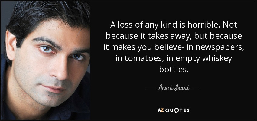 A loss of any kind is horrible. Not because it takes away, but because it makes you believe- in newspapers, in tomatoes, in empty whiskey bottles.