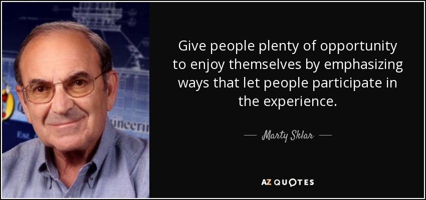 Give people plenty of opportunity to enjoy themselves by emphasizing ways that let people participate in the experience.