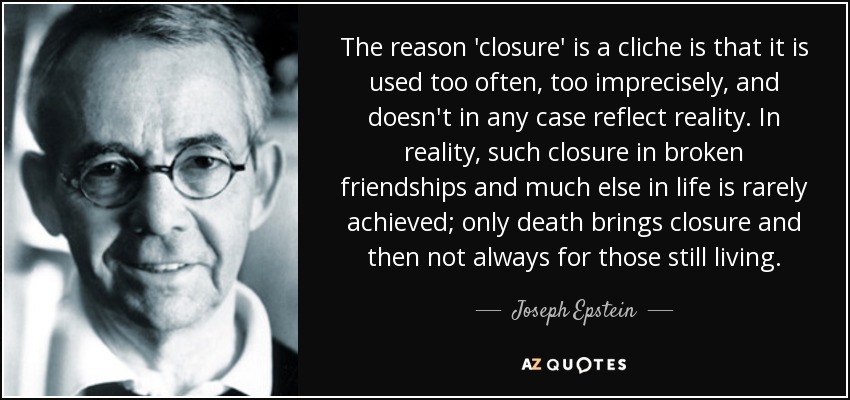 The reason 'closure' is a cliche is that it is used too often, too imprecisely, and doesn't in any case reflect reality. In reality, such closure in broken friendships and much else in life is rarely achieved; only death brings closure and then not always for those still living.