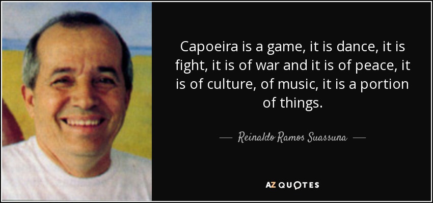Capoeira is a game, it is dance, it is fight, it is of war and it is of peace, it is of culture, of music, it is a portion of things.