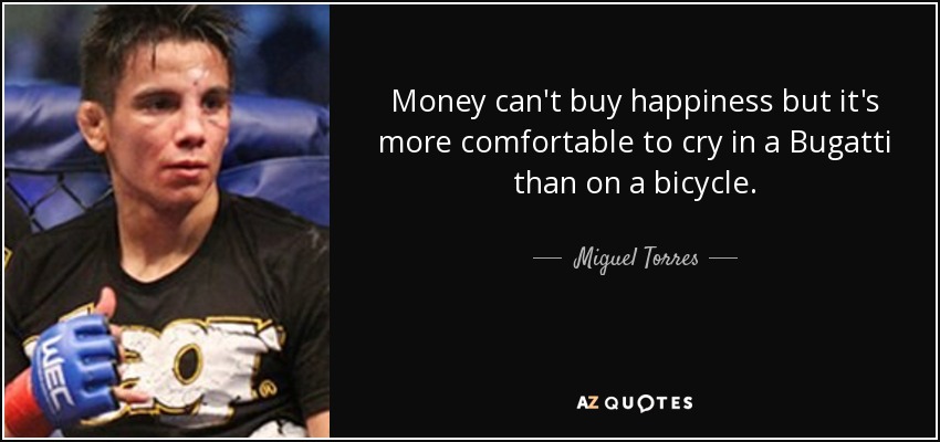 Money can't buy happiness but it's more comfortable to cry in a Bugatti than on a bicycle.