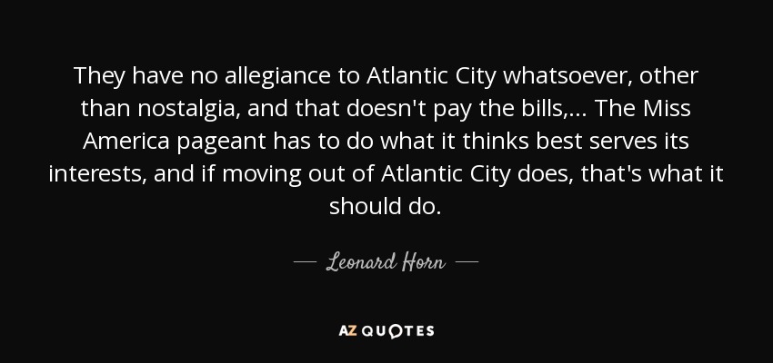They have no allegiance to Atlantic City whatsoever, other than nostalgia, and that doesn't pay the bills, ... The Miss America pageant has to do what it thinks best serves its interests, and if moving out of Atlantic City does, that's what it should do.