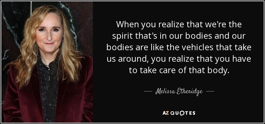 When you realize that we're the spirit that's in our bodies and our bodies are like the vehicles that take us around, you realize that you have to take care of that body.