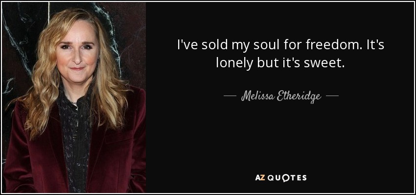 I've sold my soul for freedom. It's lonely but it's sweet.