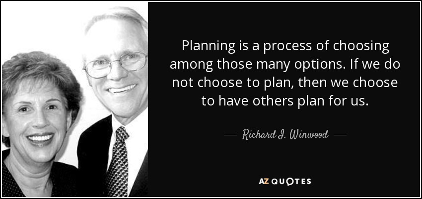 Planning is a process of choosing among those many options. If we do not choose to plan, then we choose to have others plan for us.