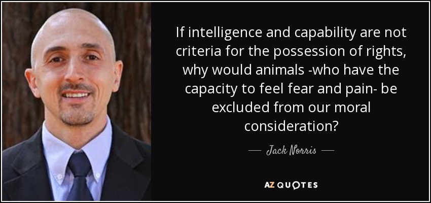 If intelligence and capability are not criteria for the possession of rights, why would animals -who have the capacity to feel fear and pain- be excluded from our moral consideration?