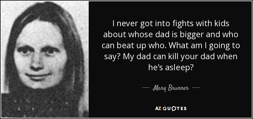 I never got into fights with kids about whose dad is bigger and who can beat up who. What am I going to say? My dad can kill your dad when he's asleep?