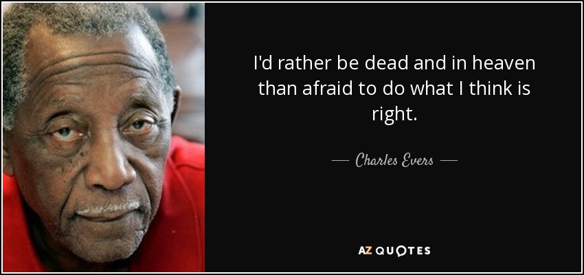 I'd rather be dead and in heaven than afraid to do what I think is right.