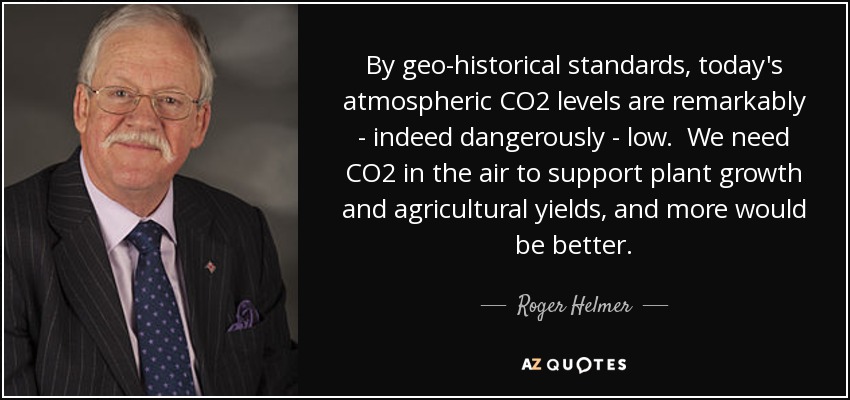 By geo-historical standards, today's atmospheric CO2 levels are remarkably - indeed dangerously - low. We need CO2 in the air to support plant growth and agricultural yields, and more would be better.