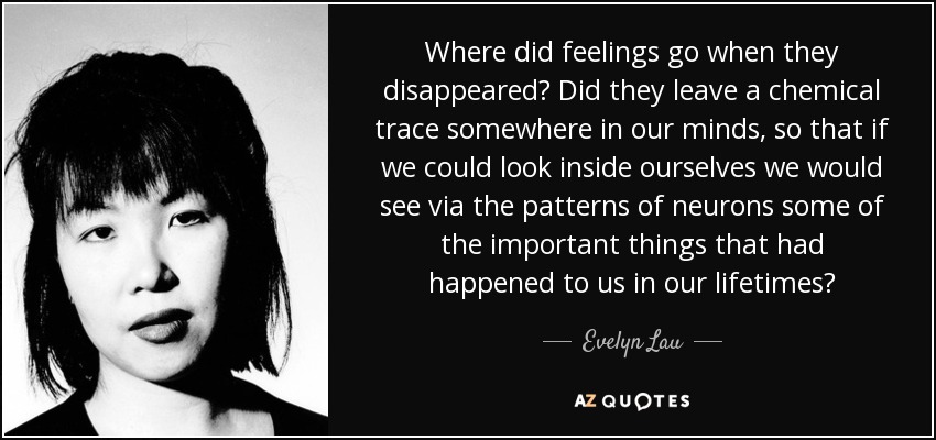 Where did feelings go when they disappeared? Did they leave a chemical trace somewhere in our minds, so that if we could look inside ourselves we would see via the patterns of neurons some of the important things that had happened to us in our lifetimes?
