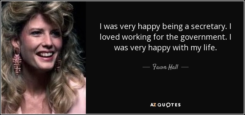 I was very happy being a secretary. I loved working for the government. I was very happy with my life.