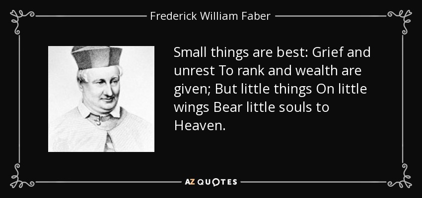 Small things are best: Grief and unrest To rank and wealth are given; But little things On little wings Bear little souls to Heaven.
