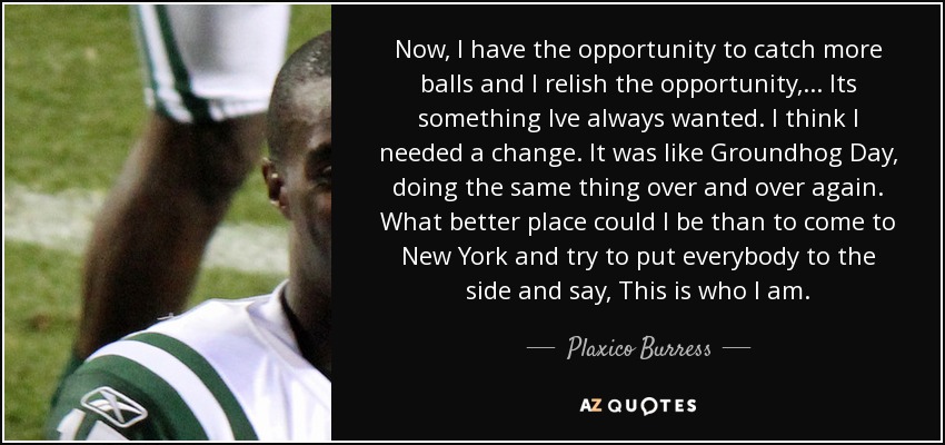 Now, I have the opportunity to catch more balls and I relish the opportunity, ... Its something Ive always wanted. I think I needed a change. It was like Groundhog Day, doing the same thing over and over again. What better place could I be than to come to New York and try to put everybody to the side and say, This is who I am.