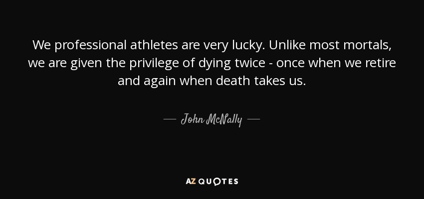We professional athletes are very lucky. Unlike most mortals, we are given the privilege of dying twice - once when we retire and again when death takes us.