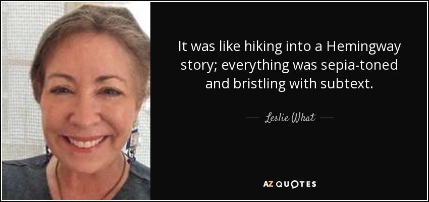 It was like hiking into a Hemingway story; everything was sepia-toned and bristling with subtext.